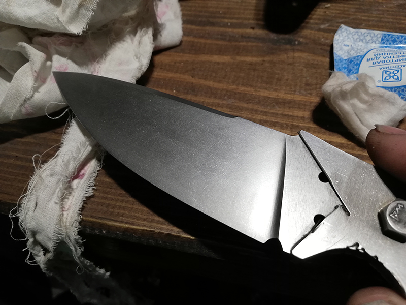 защитил кромки металла в зоне рукояти накладками из нержавейки и отправил клинок на 6 часов в галтовку (галтовка у меня самодельная, наполнитель кошачьего туалета керамические тела 5-7мм)