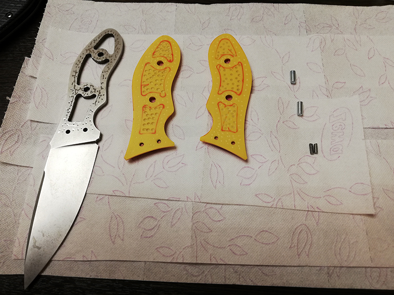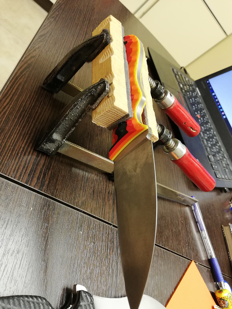 На рукоять я решил ставить G-10 (стеклотекстолит), т.к. нож будет рабочий, а дерево и кровь (жир и другие биологические жидкости и не жидкости) по моему мнению не совместимы.