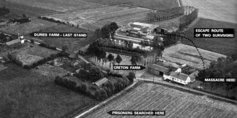 Рядовой Брайан Фэйи стал одним из немногих, кто пережил тот день. Он вспоминал, что добровольно вышел из сарая: «Я знал, что нам всем придётся пройти через это, и подумал, что продлевать свои страдания будет бессмысленно». Вышедший с ним незнакомый молодой солдат сказал: «Я не знаю, кто вы, но мне нужно пожать вам руку». Эсэсовцы предложили пленным развернуться к постройке лицом, те отказались. В ответ грянул залп из винтовок.