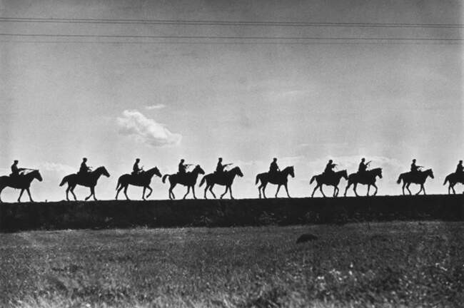 Съемка для книги «Первая конная». Цепочка кавалеристов в походе