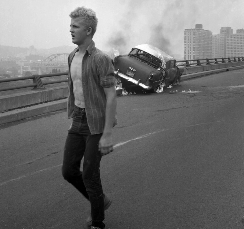 Водитель разбивший машину на мосту Форт-Питт, Питтсбург, 1964 год.