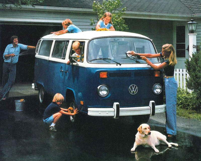 Семья моет автобус VW. 1978 год.