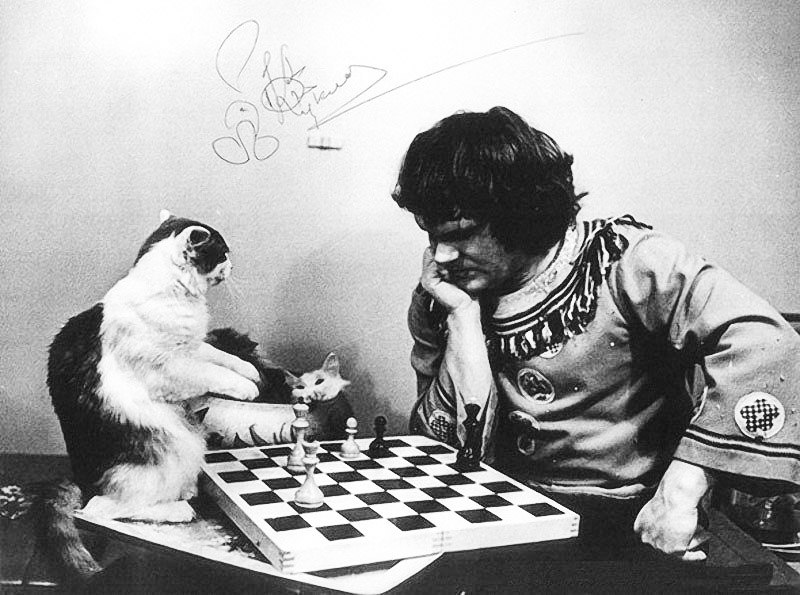 Юрий Куклaчев проигрывaет коту в шаxматы, 1980-е годы