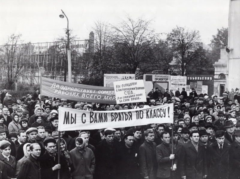 19. Митинг солидарности советских рабочих с бастующими автомобилестроителями США, 1970 год.