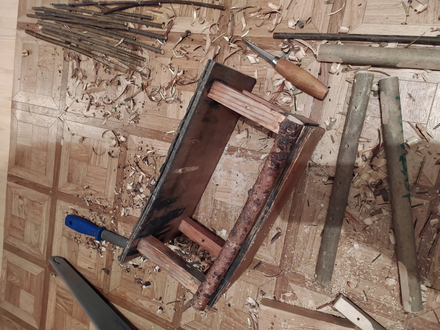 Здравствуйте товарищи. Такое дело значит. Любим мы с женой и детишками птичек. Каждый год на зиму вывешиваем кормушку за окном. И каждый год одно и тоже – голуби. Эти пылесосы опустошают содержимое кормушки в миг. Синички даже подлететь боятся. Лично я к этим красивым разноцветным птицам ничего дурного не имею. Но так дальше продолжаться не может – мелким птичкам остаётся с гулькин нос от кило семечек. Впрочем, их соседка кормит исправно – по ночам с окна летит каша на дорогу (шлёп, шмяк). Однажды чуть мужичка с собачкой не накрыло. Ну да я отвлёкся. Итак, решил я сделать модинг кормушки, чтобы голуби не могли сесть на неё, а синички, воробушки, поползни, снегири – могли. Сынок притащил откуда-то черенок от метлы, потом мы сходили под ЛЭП и настригли веток. Немножко дырочек и готово.