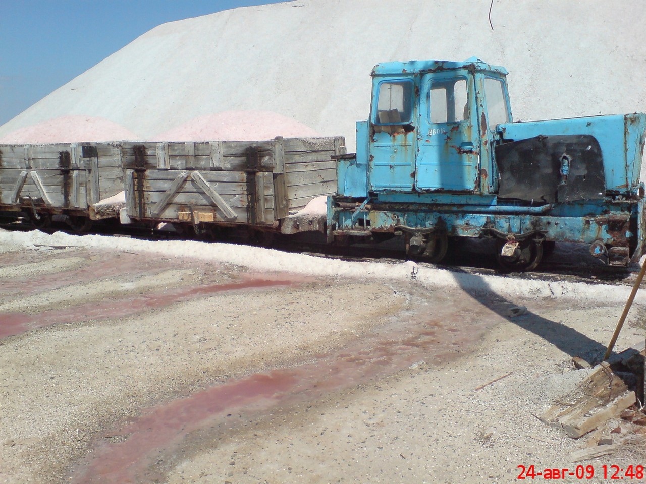 Наконец-то собрался показать сыну как добывают соль. Если честно, думал, что наш сольпром давно не работает. В магазинах соль только артёмовская. Оказалось, что мы попали на УБОРКУ. В это время коллектив работает даже в большие праздники (сегодня "день незалежности") За качество извиняюсь, ну нет у меня фотоаппарата.
