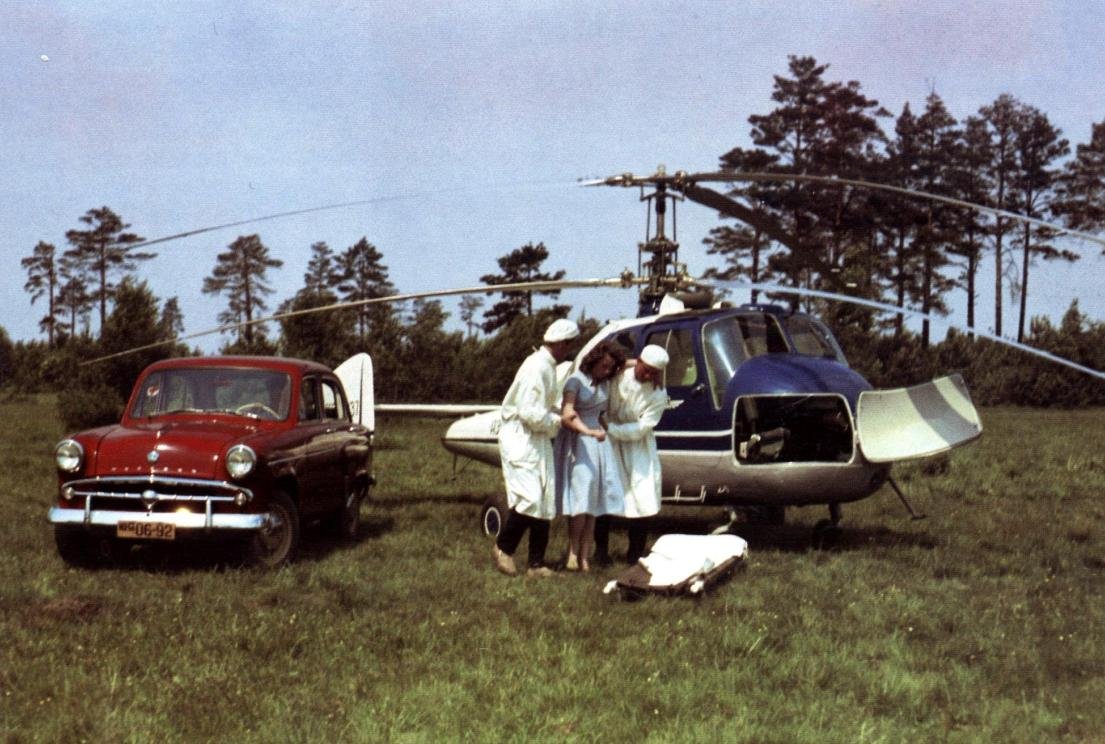 Доставка больной санитарным вертолётом КА-18. 1960 год.
