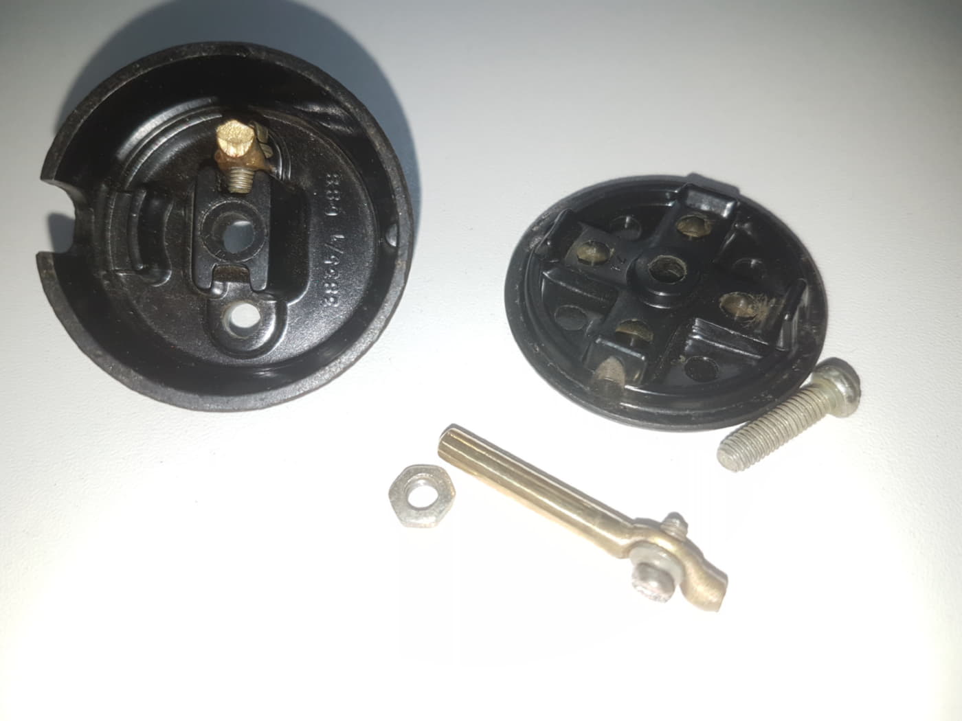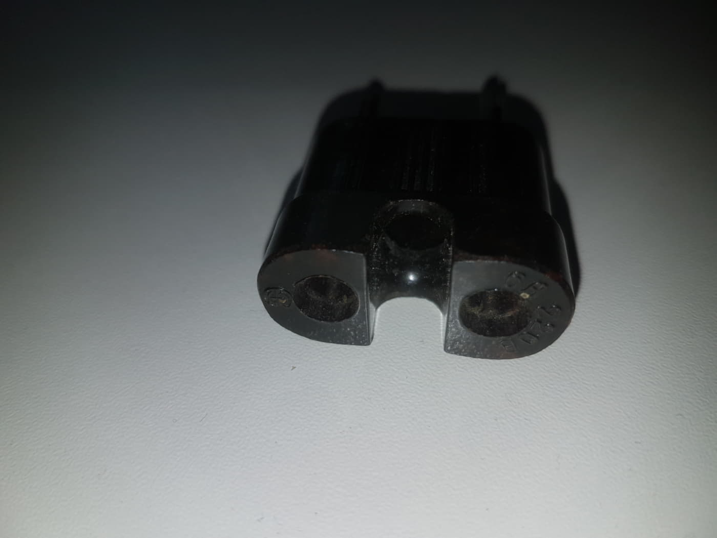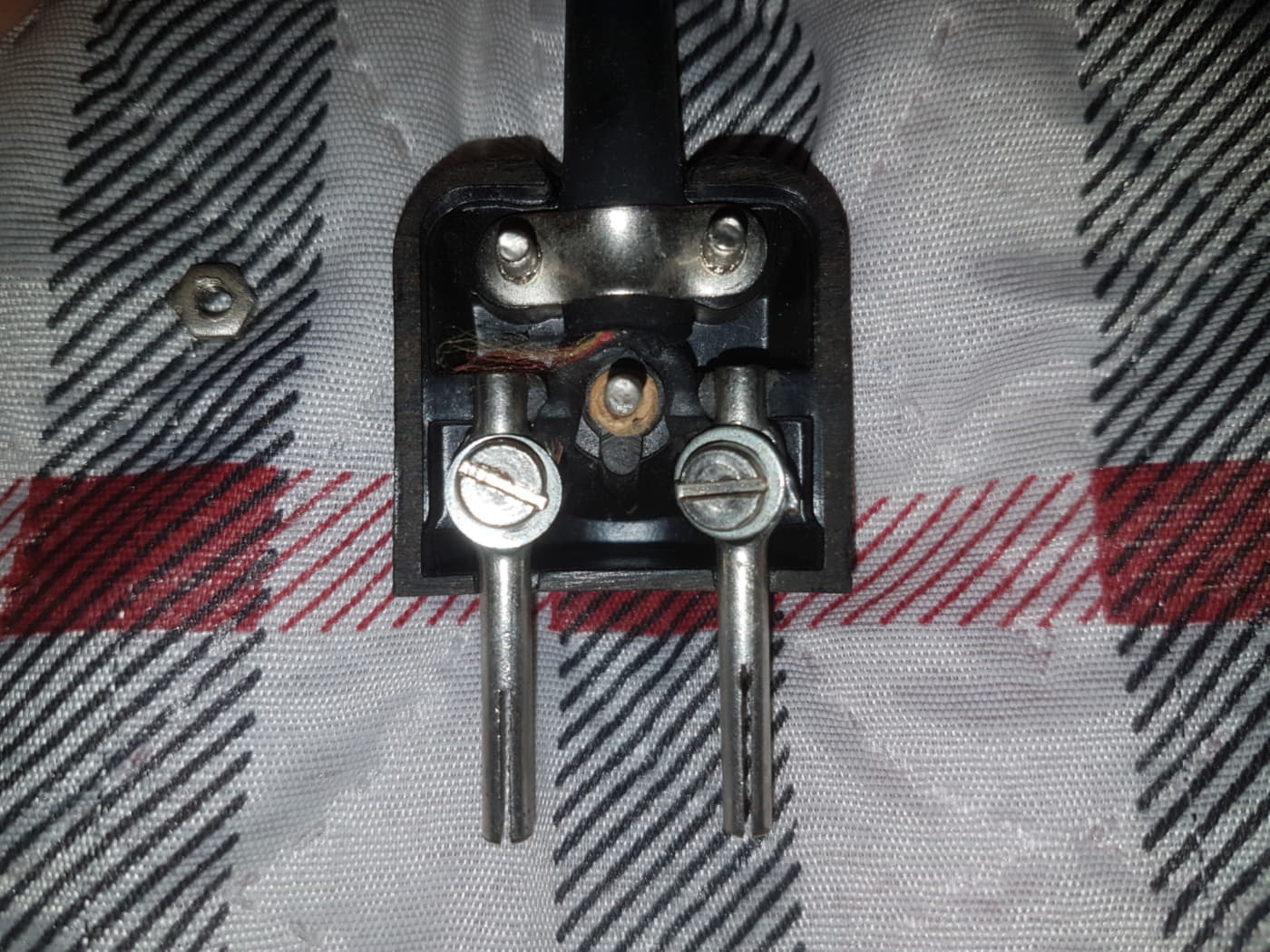 Начну с одной из самых старых - проходной вилки. Эта вилка имеет гнёзда сверху для подключения ещё одной вилки. 40-50-е годы, самые поздние - 60-е годы.