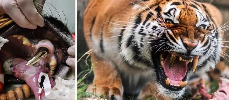 После несчастного случая этому тигру заменили родной клык на золотой