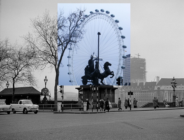 Еще одна реализация хорошей идеи - старые фотографии накладываются на реальное место в настоящее время.