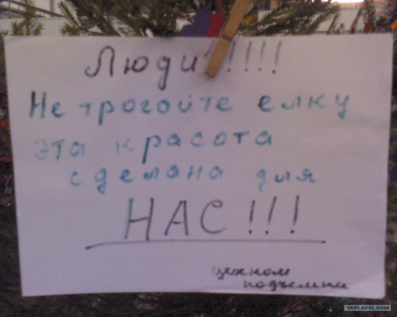 написано Здесь висела самая красивая игрушка, у того кто ее стащил пусть отсохнут руки и подпись Дед Мороз))