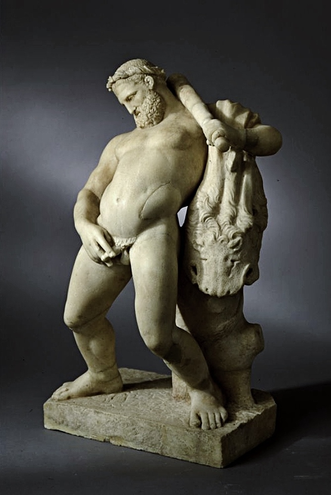 "Пьяный Геркулес" "обмывает" свой очередной подвиг. Белый мрамор. Геркуланум, Италия. I в до н.э. – I в н.э.
