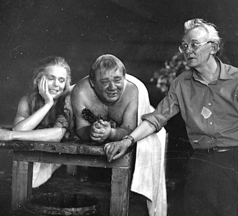 Советско-финский фильм снимали в настоящей загранице, в Финляндии, в городе Порвоо. Сцена в сауне. В кадре Леонид Гайдай что-то советует Евгению Леонову и Рите Полстер, сыгравших мужа и жену.