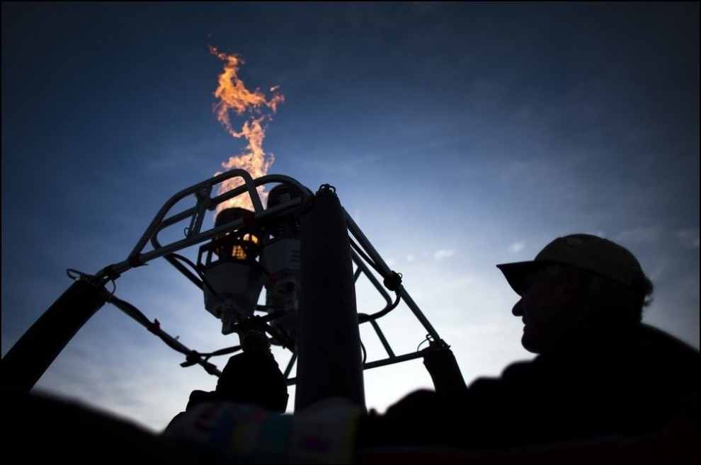 2) Воздухоплаватель проверят горелку воздушного шара. (Reuters/Valentin Flauraud)
