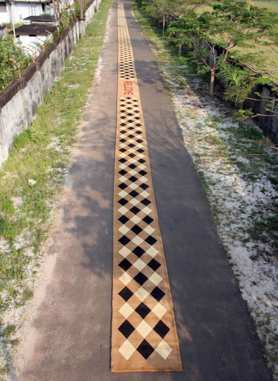 Хотя Кинга рекордов (Гиннеса) и рассматривает возможность объявить это достижение рекордом, сам коврик и его способ производства служит гораздо более высокой цели - он создан, чтобы подчеркнуть жалкие условия труда работников кокосовой промышленности, которым платят сущие копейки при тяжком ручном труде.