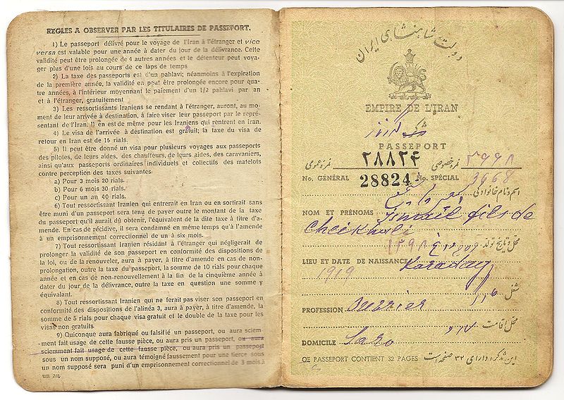 Иранский паспорт 1919 года выдачи, образца до революции 1979 г.