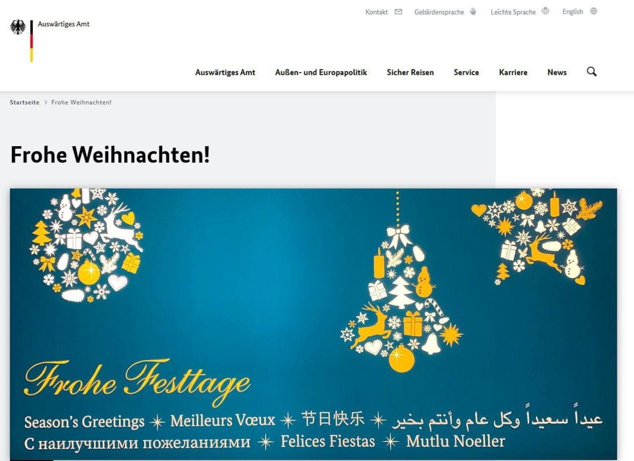 МИД Германии опубликовал поздравление с Рождеством на нескольких языках, среди которых есть русский, но нет украинского.
