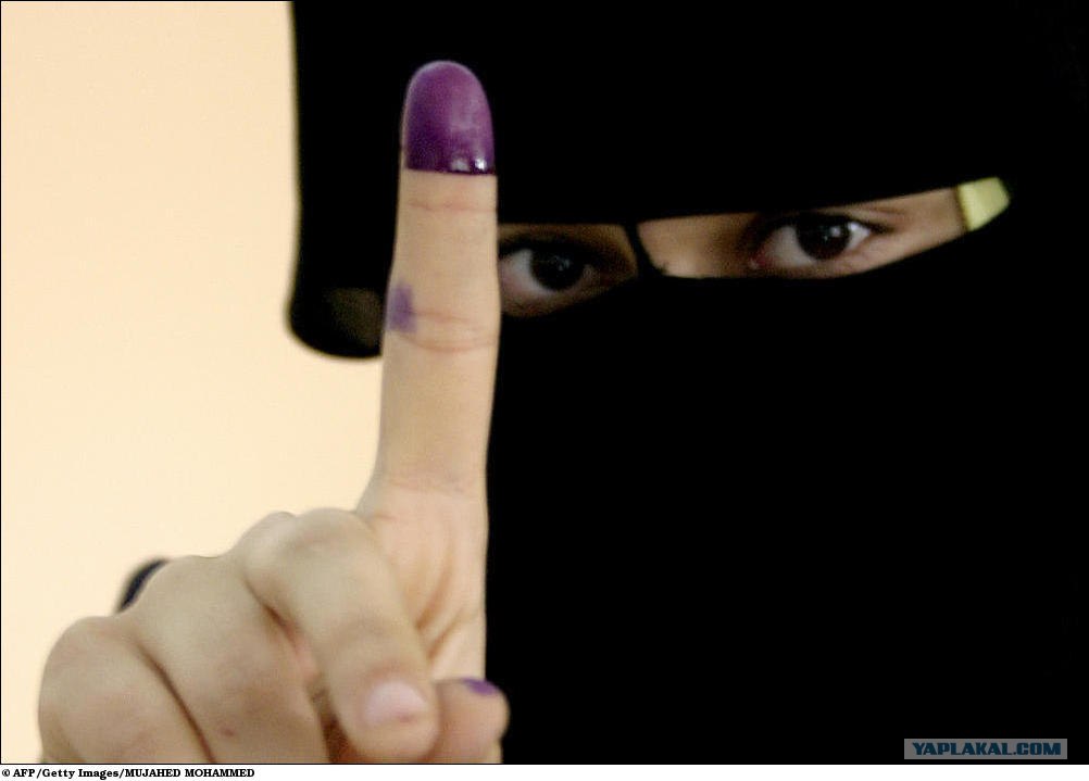 Женщина на участке для голосования обернулась в иракский флаг.