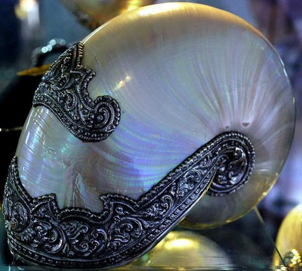 акие раковины, обработанные с помощью кислотных растворов, и превращают ювелиры в кубки-наутилусы. Кубки наутилусы, когда бы ни были изготовлены имеют необыкновенное очарование благодаря чудесным раковинам и выглядят всегда таинствено и влекуще.Перламутр из Наутилуса особенно ценился в средние века, оправлялся в бокалы и был излюбленным на всём Западе. ..