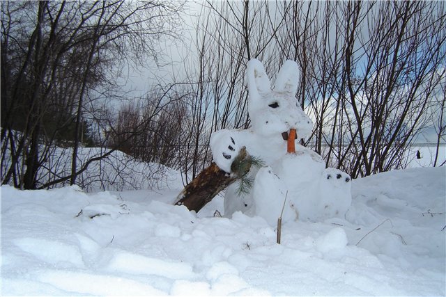 Какая прелесть! Как, интересно, делают зайцам длинные уши из снега, и они не отваливаются. Пробовала, не получаются у меня