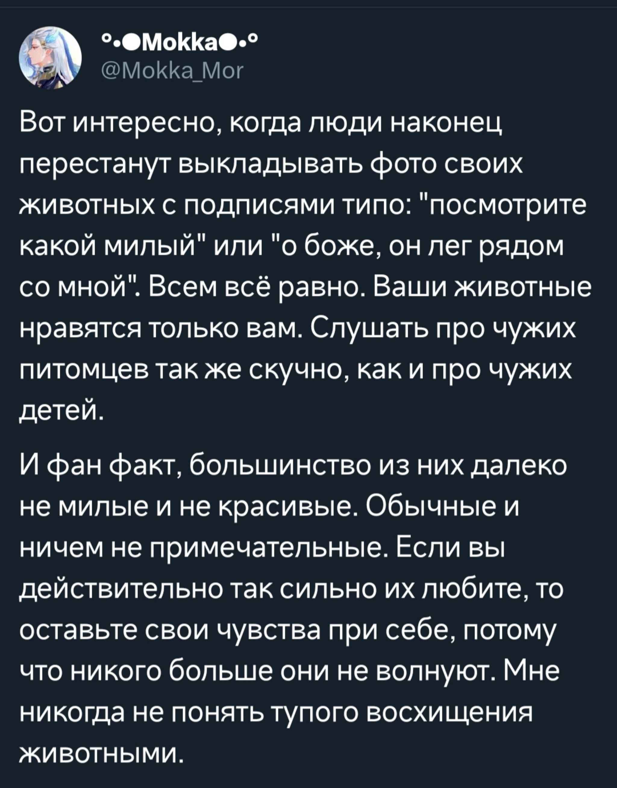 Но больше всего вымораживает - фото животных с подписью по типу: мои родители Сергей и Оля... или я на ручках у мамы.. или я сегодня дома с папой. То есть они домашних животных называют своими детьми и сюсюкают с ними, чуть ли в жопы их не целуют. Это реально уже шиза hz.gif