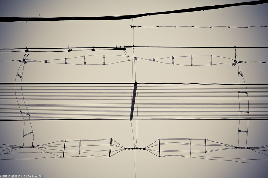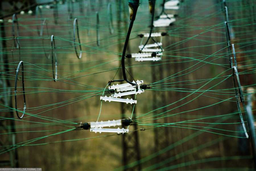 Длинная вереница зеленых проводов, изоляторов и облучателей.