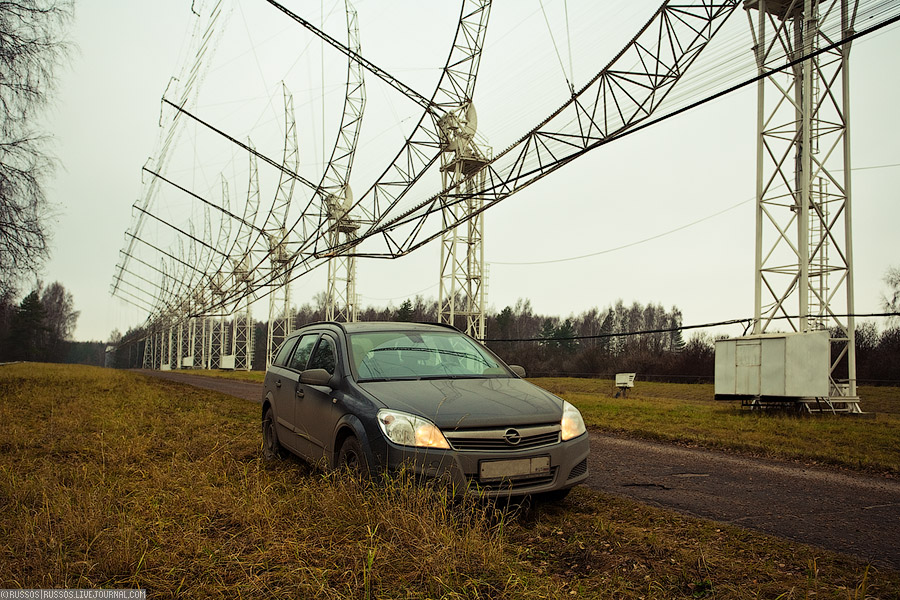 Сооружение огромно. Моя машина кажется маленьким жуком на фоне километровой шеренги мачт.