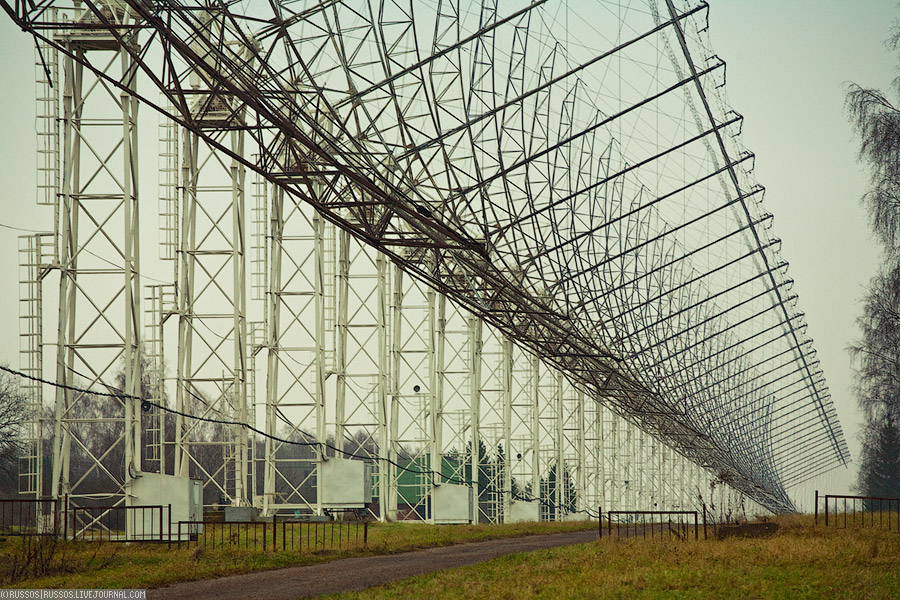 А это вид на неработающую антенну Север-Юг. В городе Пущино гуляет две байки. Первая о том, что какой-то местный биологический институт отравляет химикатами и опасными микробами воздух и городскую канализацию; и — что телескоп облучает несчастных жителей. То, что любой телескоп только принимает сигнал никто и не вспоминает. Но несмотря на якобы существующую опасность поражения головного мозга, дома строят уже впритык. Что, конечно, не совсем хорошо сказывается на качестве приема