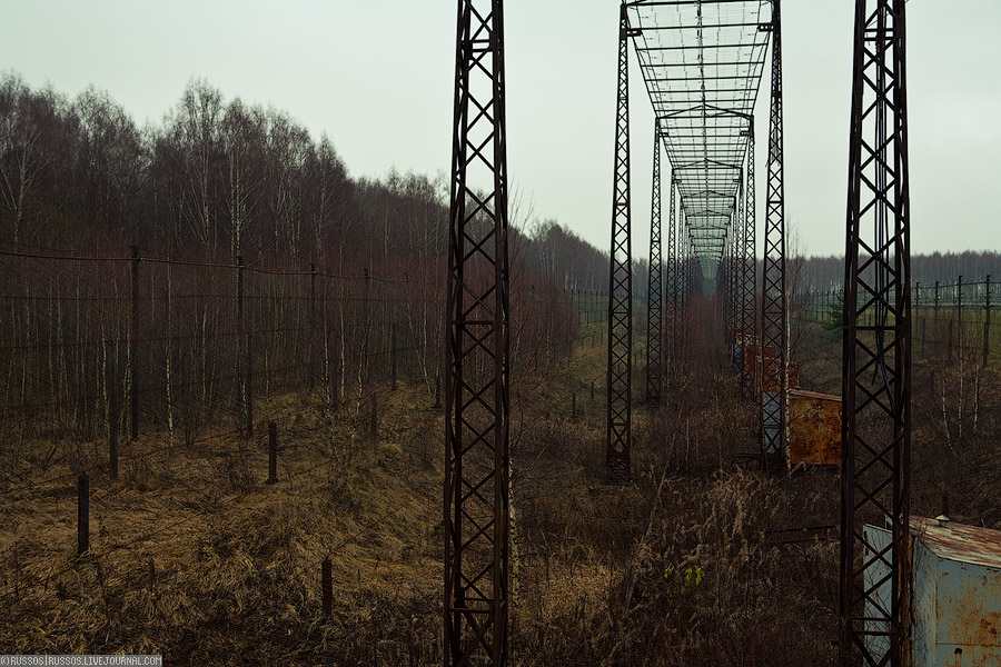 Это антенна «Юг-Север». Представляет собой неподвижный рефлектор на поверхности земли. В конце 90-х годов была разворована охотниками за цветными металлами. С тех пор не используется.