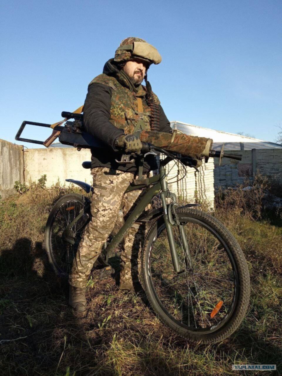 Раритеты в ВСУ. Боевой велосипедист. Станковый MG-08, только без станка и с приколхоженными сошками.