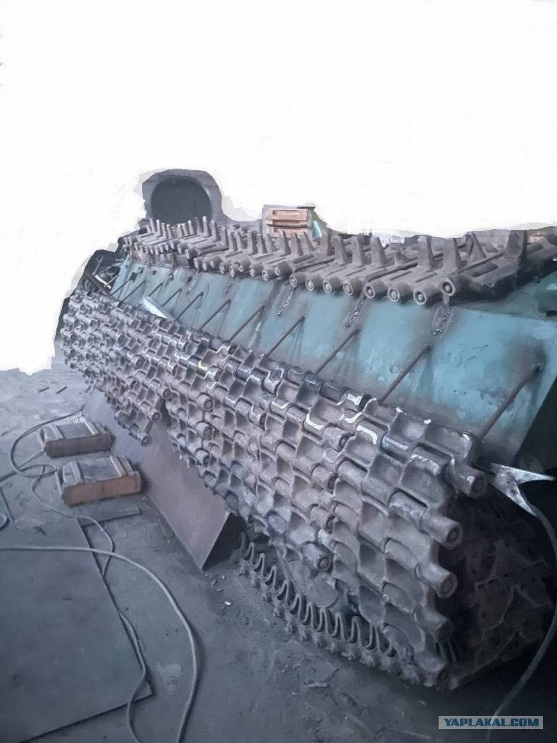 Пример защиты транспортера МТЛБ гусеничными лентами от Т-72.