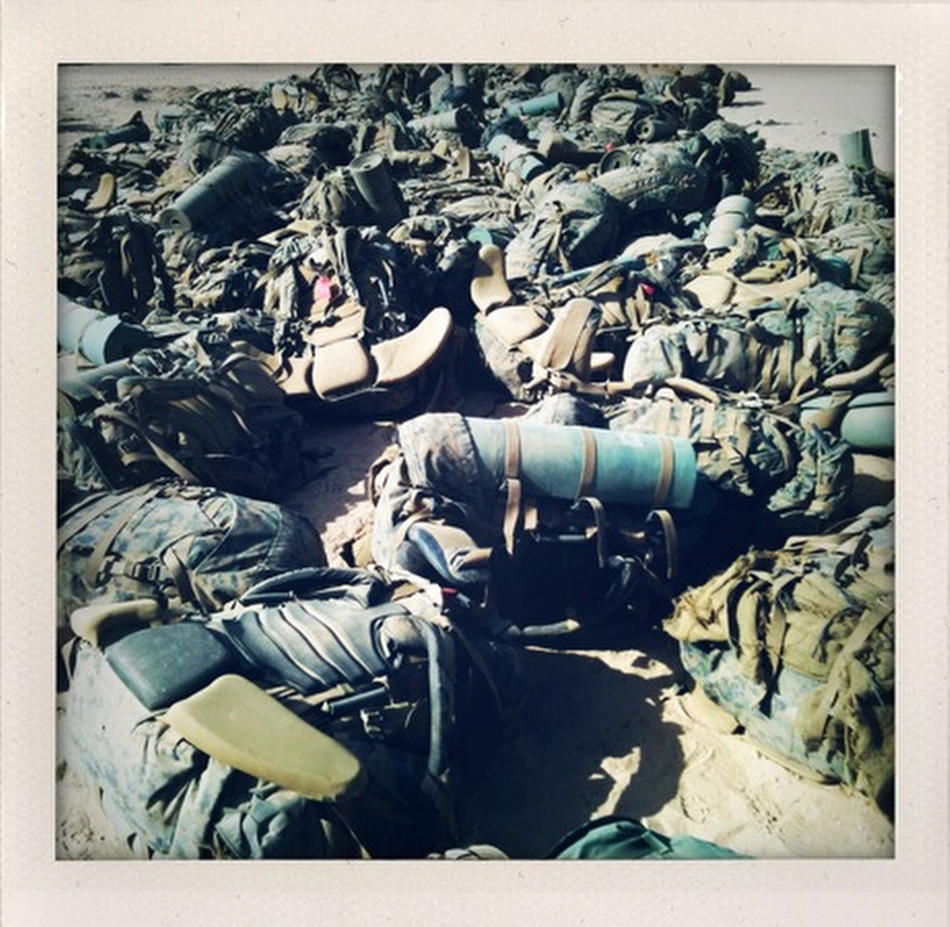 18) Ранцы морских пехотинцев сложены возле брода через канал в Марджахе.