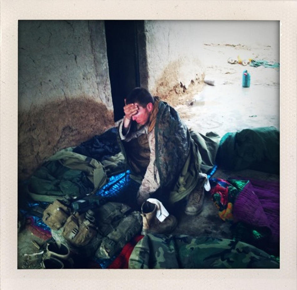 21) Морпех проснулся после ночёвки вместе со своим взводом в глинобитной хижине в Марджахе.