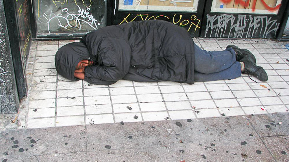 1) Место, выбранное этим мужчиной для ночёвки – изолированное и небезопасное. Он не стал ночевать в трущобах поблизости, где многие бомжи сбиваются в группы для общения, относительной безопасности и получения благотворительной помощи.