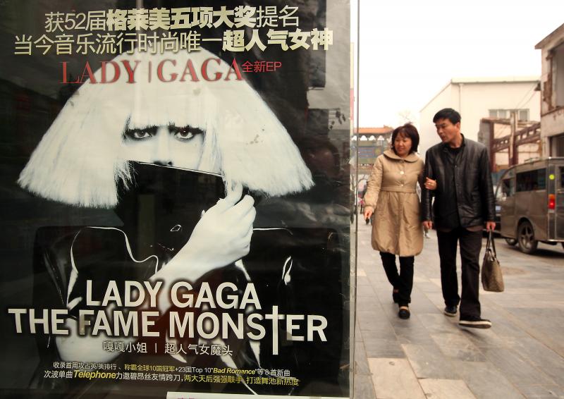 9. Китайский музыкальный магазин рекламирует релиз нового альбома Леди Гаги в Пекине 15 апреля. Китай стал важным рынком для американских предпринимателей, так как самая густонаселенная страна в мире продолжает поглощать западную культуру. (UPI/Stephen Shaver)