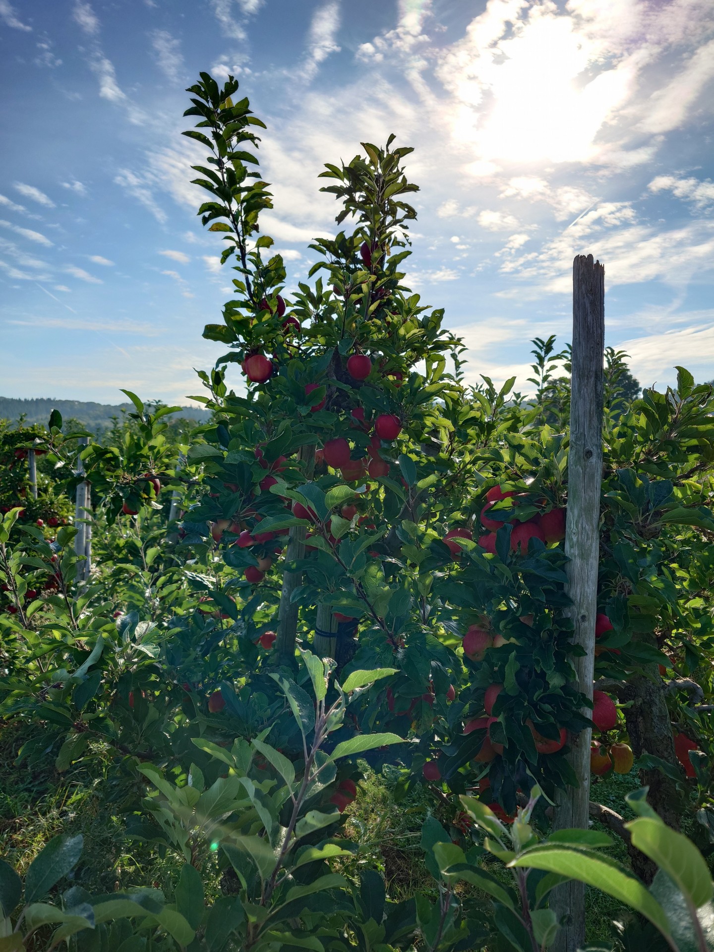 Ну, остальное что висеть останется, есссесссно пойдет на продажу / переработку. Приезжаешь со своей тарой, рвёшь что получше, платишь и домой. Сорта яблок "долгоиграющие", до декабря/января точно долежат. От нас до плантации километров 30, ездим каждый год уже лет 10 как. Цены есссесссно поднялись. Совсем раньше платили что-то около еврика за кило, в этом году почти два. Ну, надо отдать должное, взвешивание происходит очень "великодушно" в пользу покупателя. То что на снимке обошлось в примерно 40 евриков. Ездили с утра пораньше пока жары и народу не было... И ! Плантации принадлежат католическому монастырю (поэтому всё так и ухоженно); только в этом году обратил внимание, что определенных слои населения вообще ни ногой сюда 🫣.