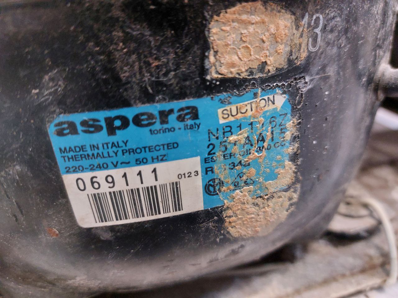 Компрессор и его модель: Aspera NB1116Z. Это важное уточнение, потому что на эту модель устанавливали разные компрессоры, соответственно, и реле тоже отличаются...