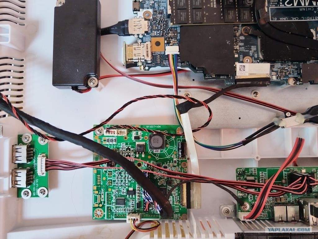 А что не так-то?)))Материнка от ноутбука с внешним блоком питания и навесной платой сопряжения=дешёвый моноблок)))Вполне рабочий вариант,я так половину ноутбука без дисплея пользовал в качестве медиацентра,подключив к телеку)Только эту сборную солянку завернули в красивый корпус походу.А что минусим-то?Про количество фоток речи не было.