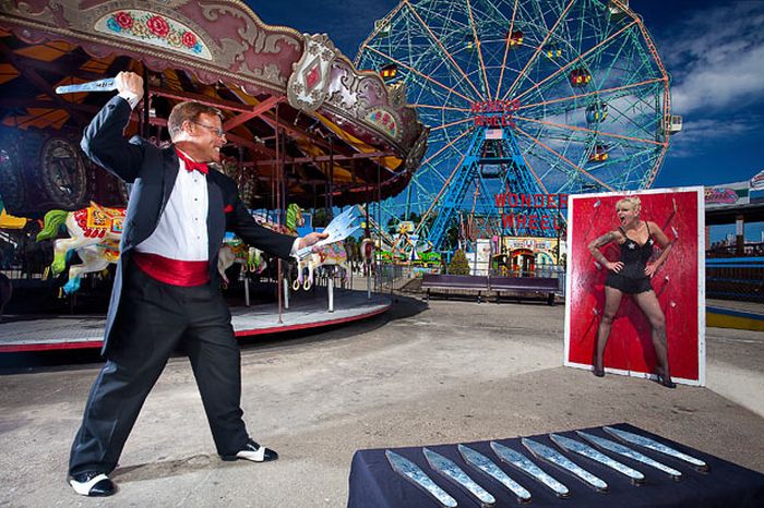 6. Дэвид Адамович бросил за одну минуту, вокруг своей партнерши, 102 ножа.