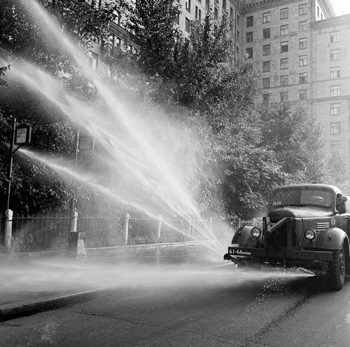 21 Поливальная машина на Автозаводской улице, Москва, СССР. 1960-е.