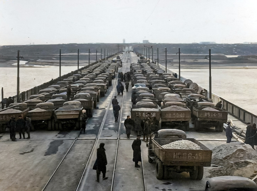13 Испытания Октябрьского моста перед открытием. Новосибирск, 1955 год.
