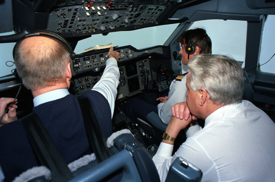 25 Президент России Борис Ельцин в кабине пилотов президентского самолета, 1992 г.Дмитрий Донской