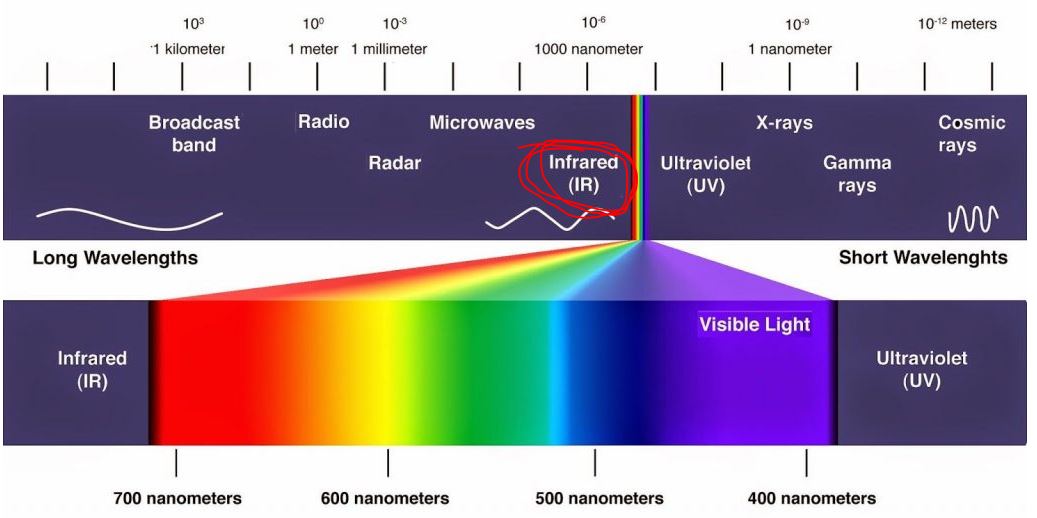 Инфракрасные волны, они чуть чуть в сторонке от видимого диапазона излучения (эти волны не переносят/не несут информации о цветах в нашем обыденном представлении)