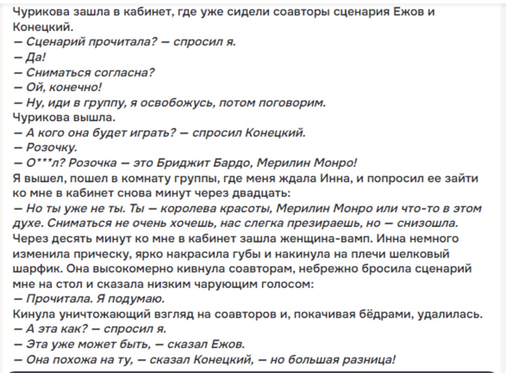 4.Георгий Данелия о пробах Инны Чуриковой на роль соблазнительницы Розочки для фильма "Тридцать три":