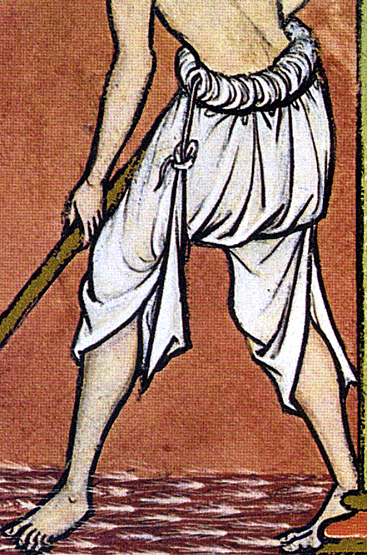 Носили в Средневековье и нижнее белье. Оно появляется еще в Древнем Риме, широко распространяется в последующую эпоху. И женщины и мужчины носили нижнюю рубаху, а вот подобие трусов - брэ, было только у мужчин. Женщины трусов не носили до 19 века. Брэ, строго говоря, были ближе к штанам, чем к современным трусам, в них не зазорно было ходить и при народе.