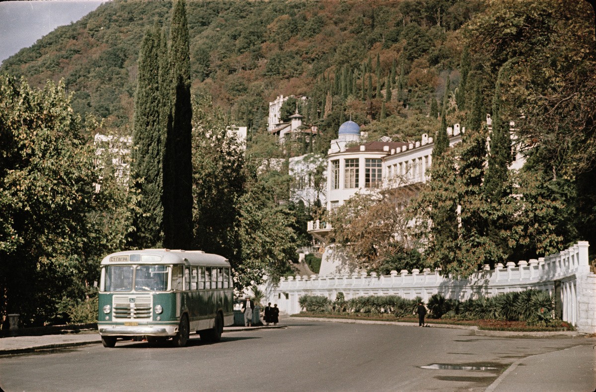 18 Автобус ЗиЛ-158 на проспекте Нартаа в абхазской Гагре. 1960 год.