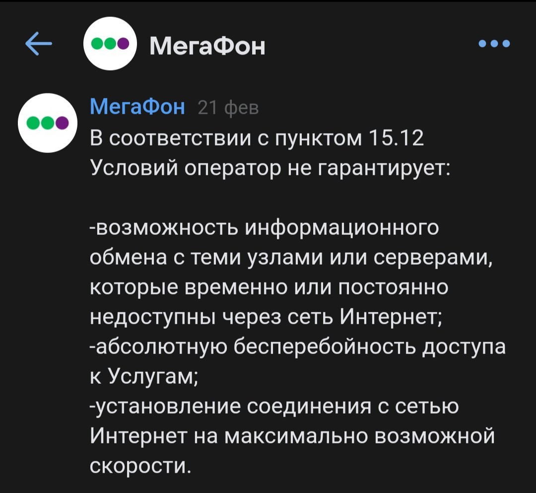 И снова здрасти, мегафон ничего сам не отключал и не отключает. Это делают спецслужбы. Более того, поправку приняли, что опсосы не несут ответственности за это.