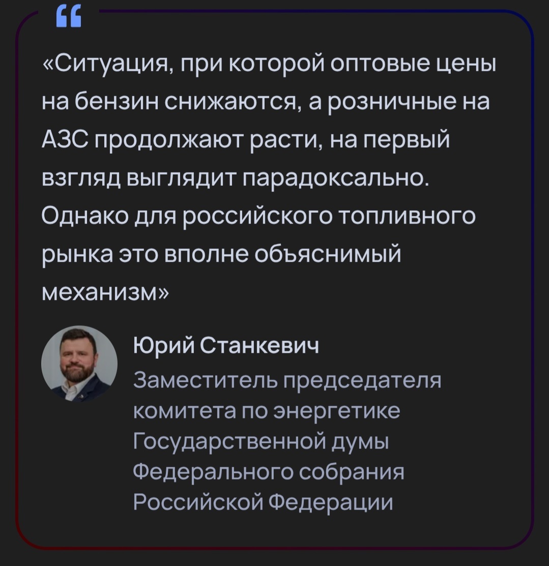 Да лааадно... Если бы никто не покупал бензин - цена бы его снижалась... А когда все бегут завравлять свои ведра с болтами - только дебил будет опускать цены.