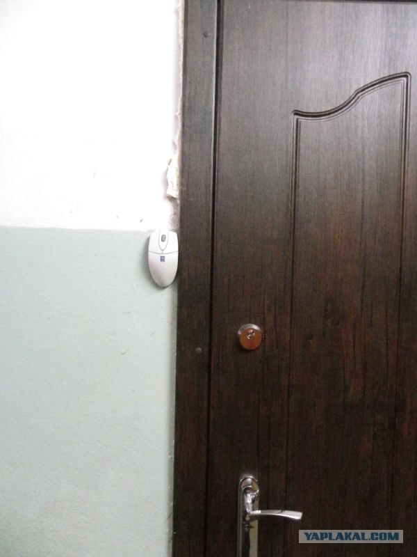 На беспроводных звонках сзади кнопки всегда есть липкая основа для приклеивания её к стене, чтобы не сверлить лишние дырки. Эту основу легко оторвать от кнопки, и можно использовать как двухсторонний скотч, для того чтобы приклеить саму мышку к стене.