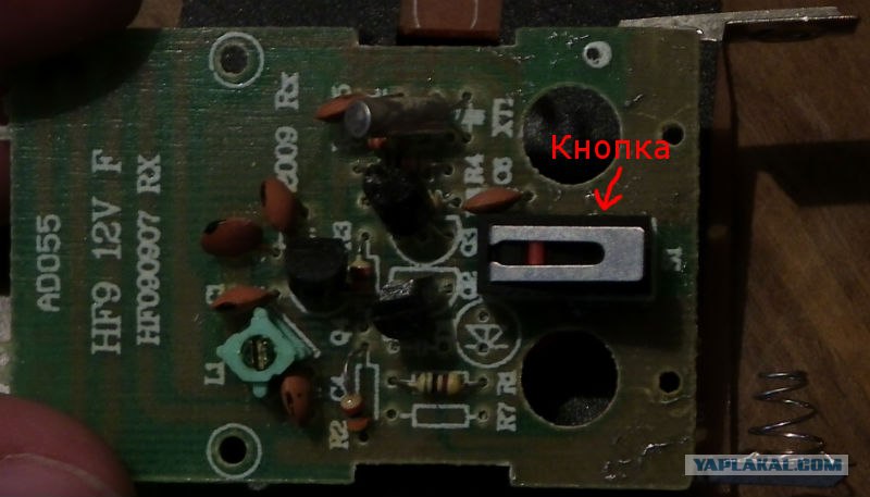 С самим звонком ничего делать не надо, главное проверить чтобы в нём были новые батарейки. А вот из кнопки вынимаем все внутренности. Обычно это делается совсем не сложно, и вам даже не понадобятся никакие инструменты. Далее ищем на плате кнопку: